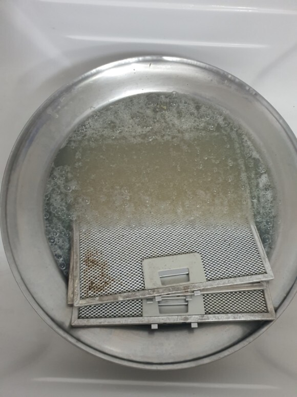후드필터의 기름때도 뜨거운 물에 잘 녹아요